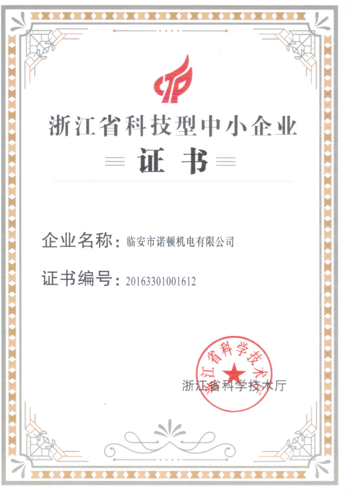 祝賀諾頓公司獲評“浙江省科技型中小企業(yè)”